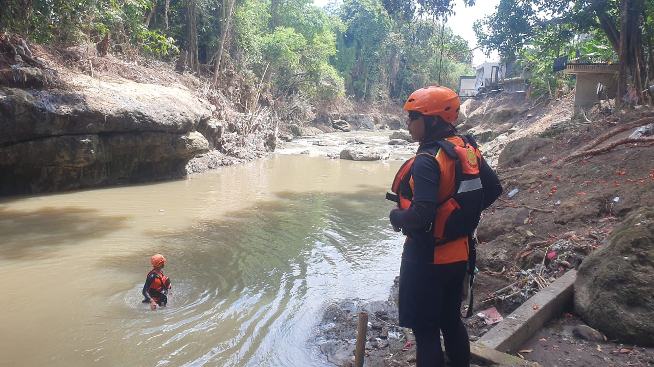 BELUM DITEMUKAN, TIM SAR GABUNGAN KEMBALI SISIR SUNGAI CARI KORBAN BANJIR DI MENGWI