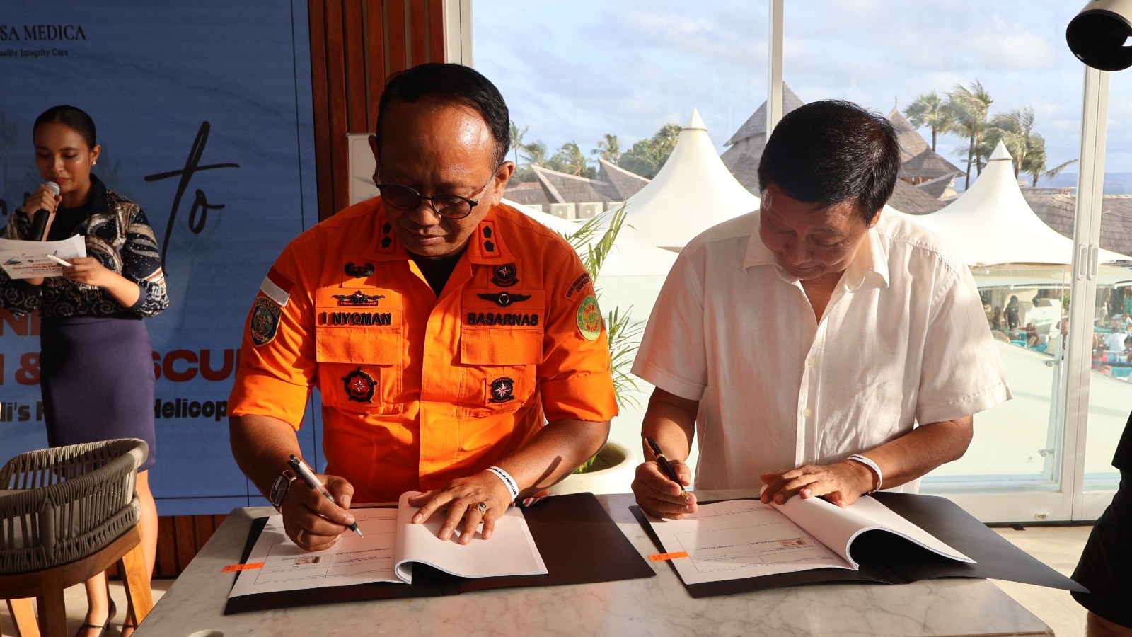 Dalam kesempatan yang sama, juga dilaksanakan penandatanganan Nota Kesepahaman (MoU) antara Kepala Kantor Pencarian dan Pertolongan Denpasar, I Nyoman Sidakarya, S.H., dengan Tonny Mulyadi selaku Presiden Direktur PT Sayap Garuda Indah.