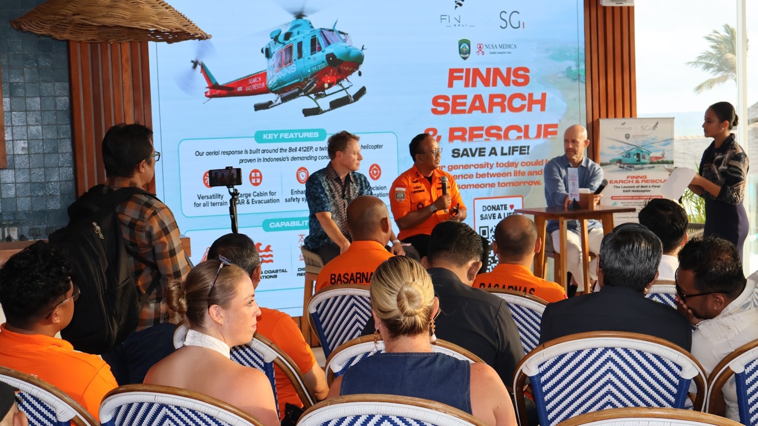 Menyadari pentingnya respons darurat yang cepat, tepat, dan efektif, kemitraan ini berkomitmen untuk memperkuat kesiapsiagaan penyelamatan jiwa melalui dukungan akses udara. Pada acara peluncuran yang digelar sore hari, dilakukan simulasi penyelamatan korban tenggelam di laut. Simulasi tersebut melibatkan Helikopter Bell 412 milik SGI yang beroperasi dari area FINNS Beach Club, didukung oleh satu unit jetski dan perahu karet milik BASARNAS Bali, dengan lokasi kegiatan di perairan sekitar Pantai Canggu.