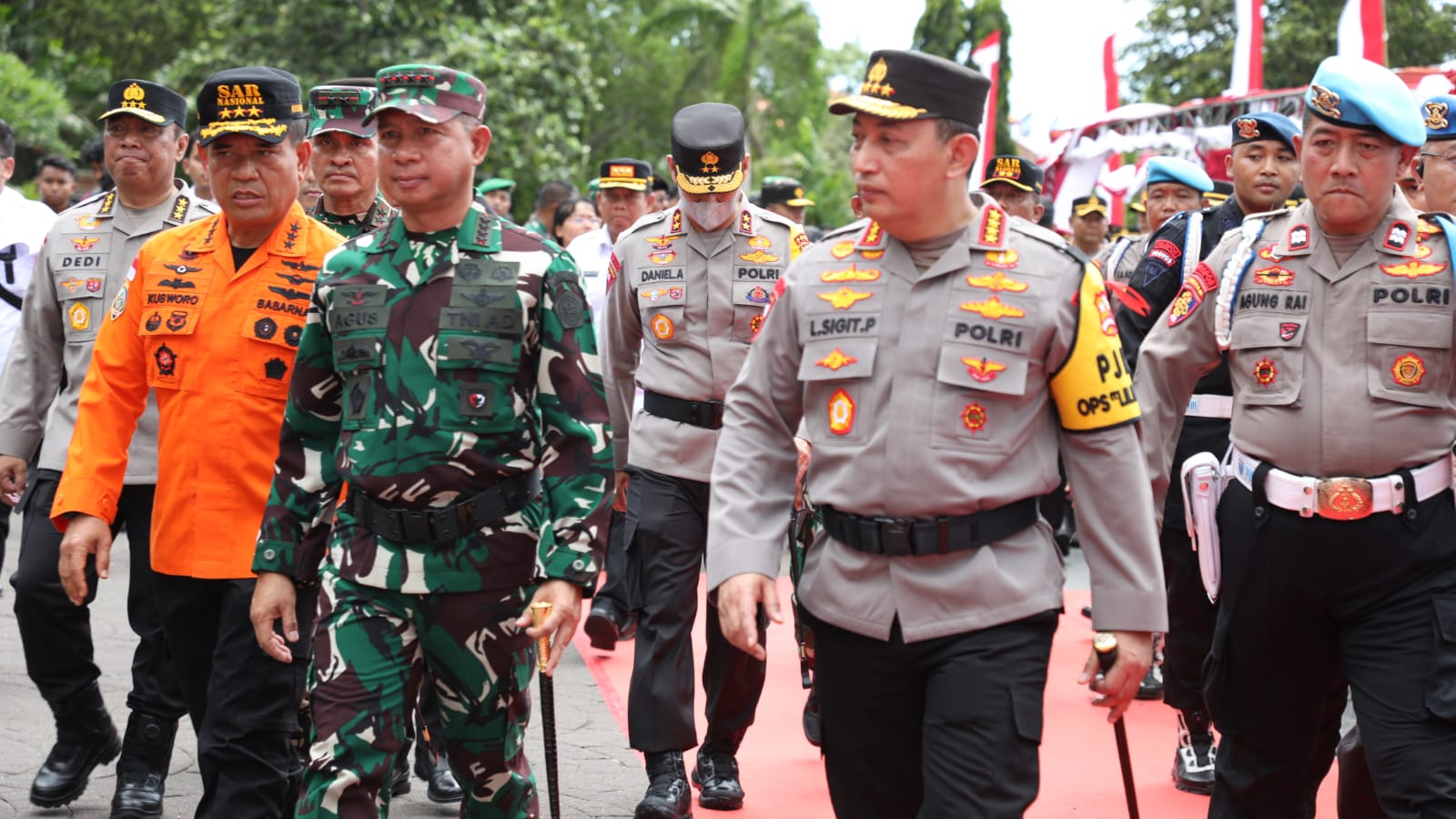 DENPASAR --- Kepala Badan Nasional Pencarian dan Pertolongan (Basarnas) Marsekal Madya TNI Kusworo menghadiri apel gelar pasukan Operasi Lilin Agung 2024, Jumat (20/12/2024) bertempat di Lapangan Puputan Margarana Niti Mandala Renon, Kota Denpasar. Apel yang melibatkan unsur TNI/POLRI dan beberapa stakeholder terkait, termasuk Basarnas, dipimpin langsung oleh Kapolri, Jenderal Polisi Listyo Sigit Prabowo, beserta Panglima TNI Jenderal Agus Subianto. Apel gelar pasukan ini untuk memastikan kesiapan penuh seluruh personel dalam menciptakan keamanan dan ketertiban, serta menghadapi segala resiko marabahaya. Operasi Lilin Agung 2024 dijadwalkan berlangsung selama 13 hari, mulai dari 21 Desember 2024 hingga 2 Januari 2025. Rencananya ada 2.794 posko yang didirikan, yakni pos pengamanan, pos pelayanan, dan pos terpadu. Tak tanggung-tanggug, sebanyak kurang lebih 141.605 personel gabungan terlibat dalam operasi Lilin Agung.