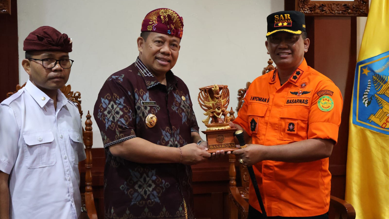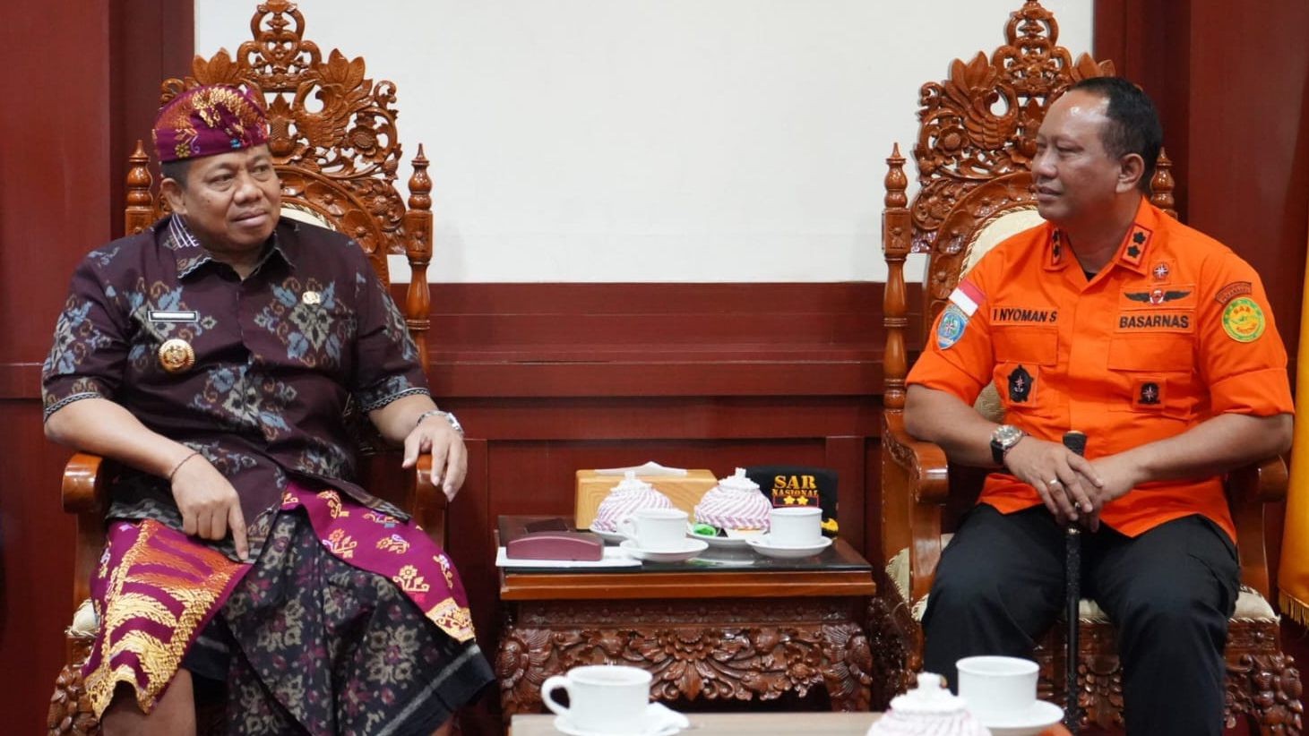 DENPASAR --- Kepala Kantor SAR Denpasar, I Nyoman Sidakarya, S.H. beserta jajaran melaksanakan audiensi dengan Pejabat Gubernur Bali, Irjen (Purn) Sang Made Mahendra Jaya, Kamis (26/10/2023). Pada kesempatan tersebut turut hadir Kalaksa BPBD, Dr. Drs. I Made Retin, AP., M.Si. dan Kepala Satuan Polisi Pamong Praja (Kasatpol PP) Provinsi Bali, I Dewa Nyoman Rai Dharmadi.