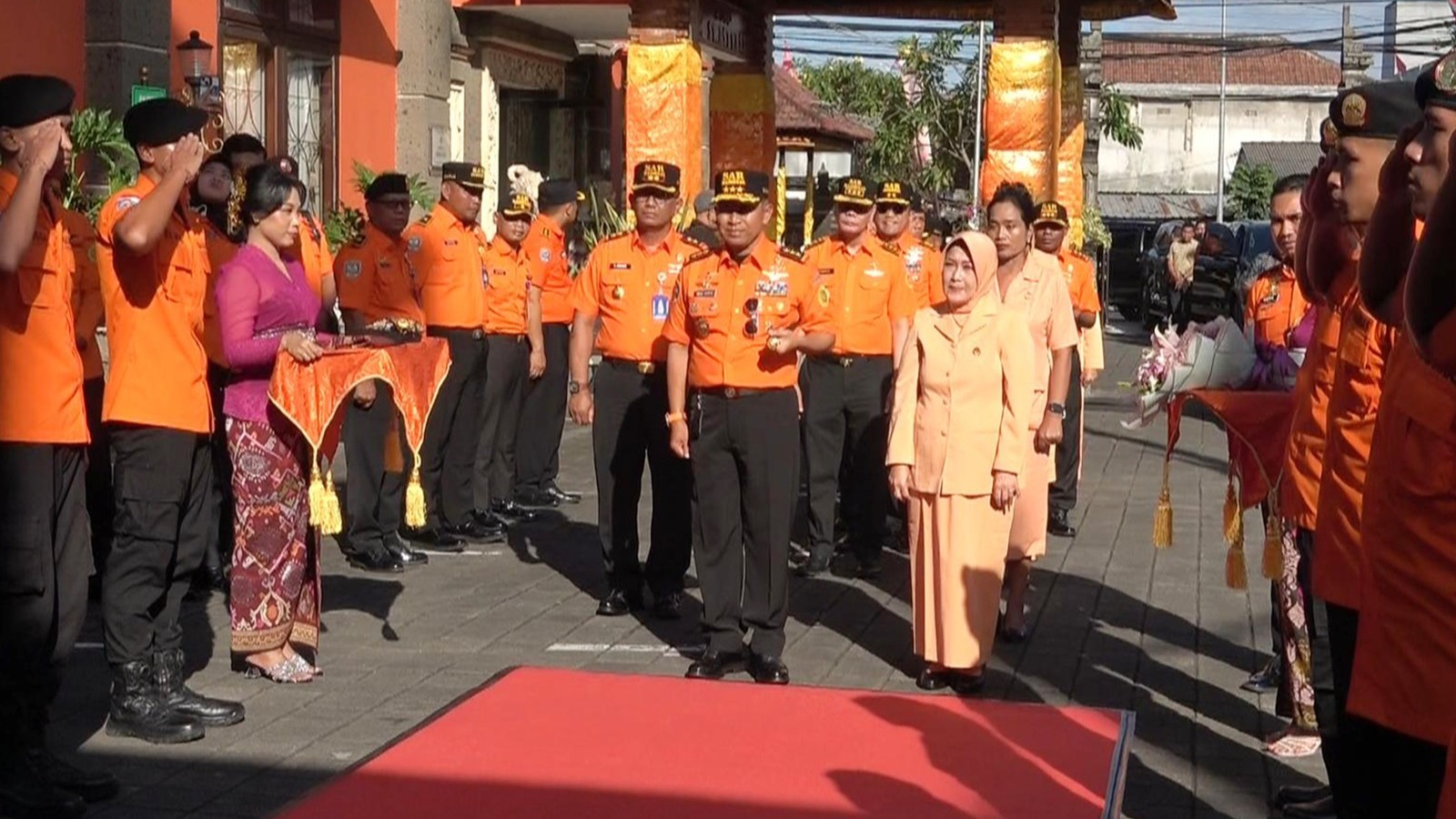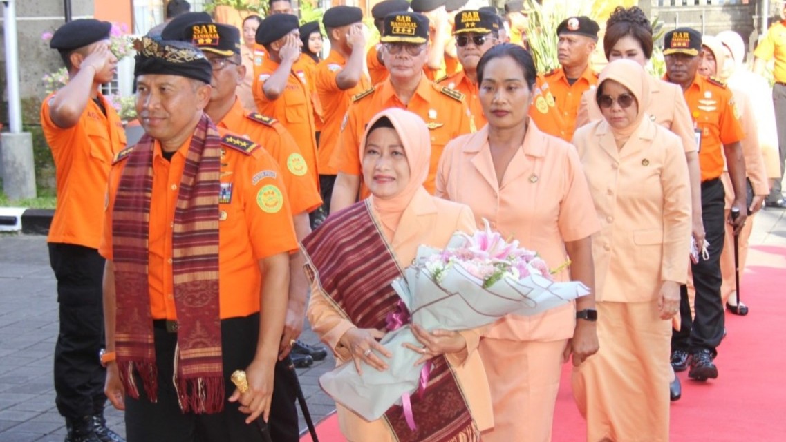 Kedatangannya disambut dengan jajaran kehormatan dan ceremonial budaya khas Bali, tarian hanoman serta simbolisasi pemakaian udeng dan selendang. Selanjutnya KABASARNAS langsung menemui seluruh pegawai Kantor Pencarian dan Pertolongan Denpasar untuk memberikan pengarahan.
