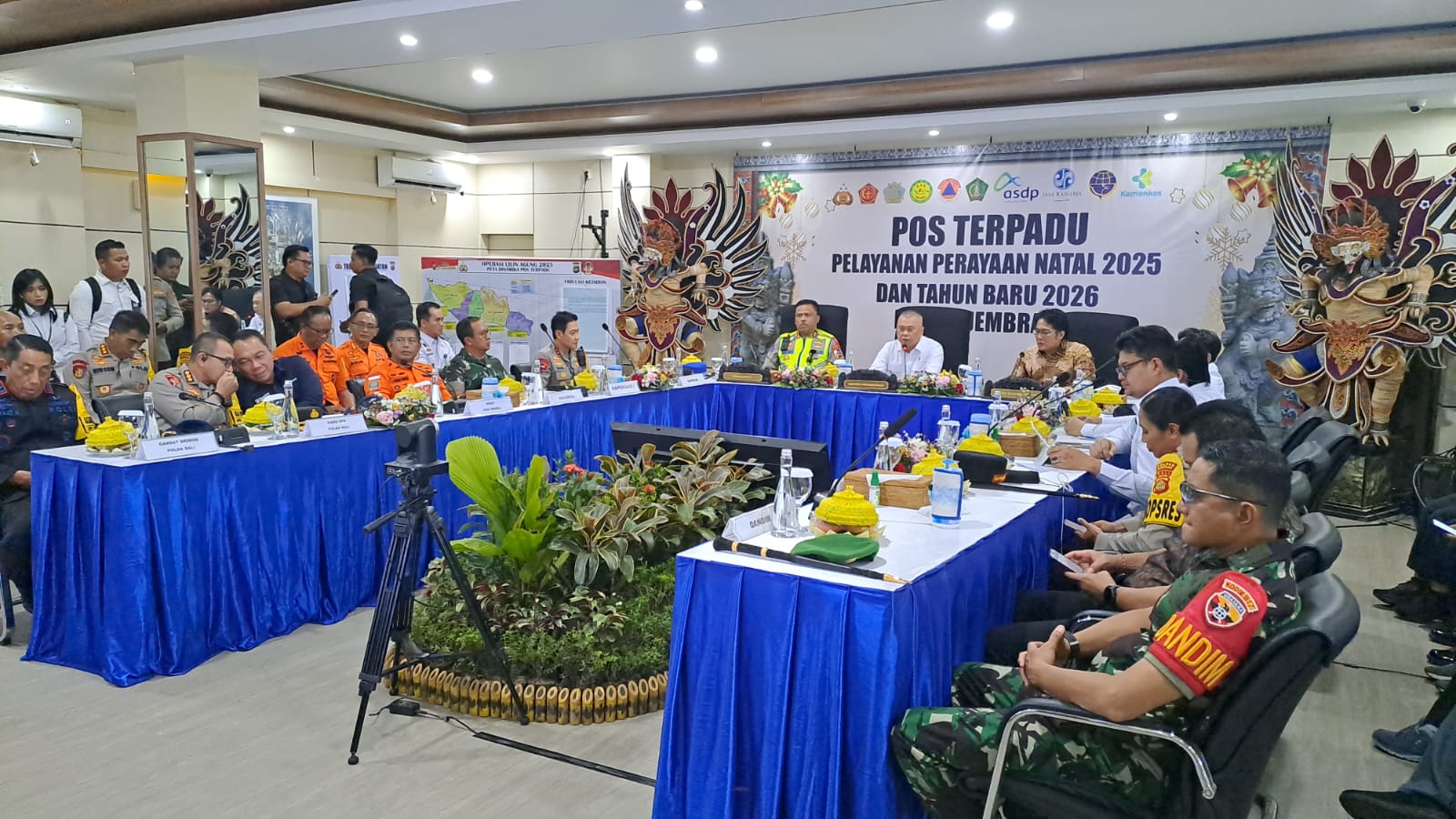 GILIMANUK --- Mendekati perayaan tahun baru 2026 dan 4 hari melewati perayaan Natal, Inspektur Badan Nasional Pencarian dan Pertolongan, Brigjen TNI I Nyoman Parwata meninjau Pos terpadu Pelabuhan Gilimanuk, Senin (29/12/2025). Dalam rangkain kunjungannya kali ini juga bertepatan dengan kedatangan Menteri Perhubungan (Menhub), Dudy Purwagandhi meninjau kesiapan layanan penyeberangan di Pelabuhan Gilimanuk, Kabupaten Jembrana, Bali. Turut dalam rombongan diantaranya Kakorlantas Polri Irjen Pol Agus Surya Nugroho dan Kapolda Bali Irjen Pol Daniel Aditya Jaya.