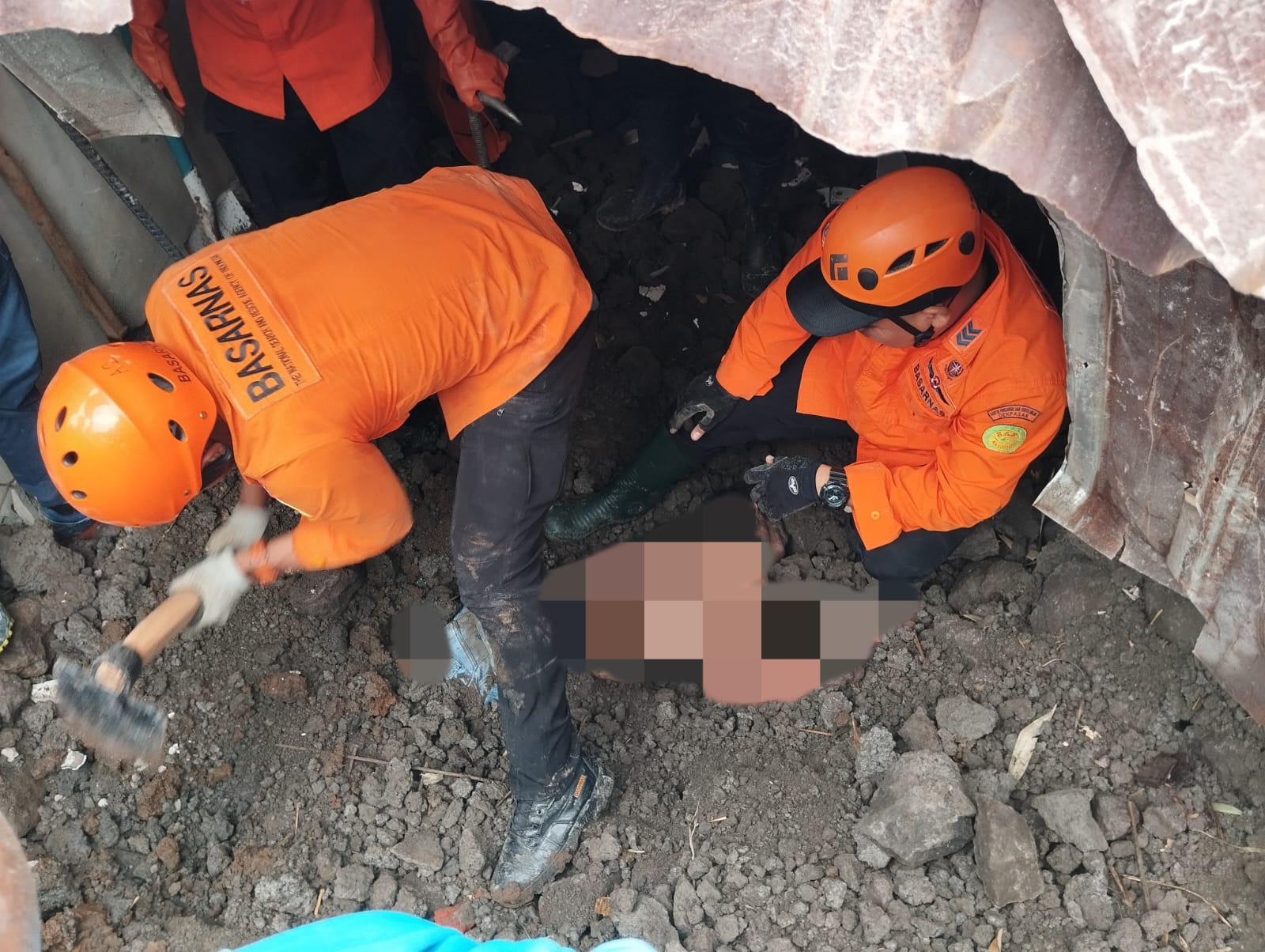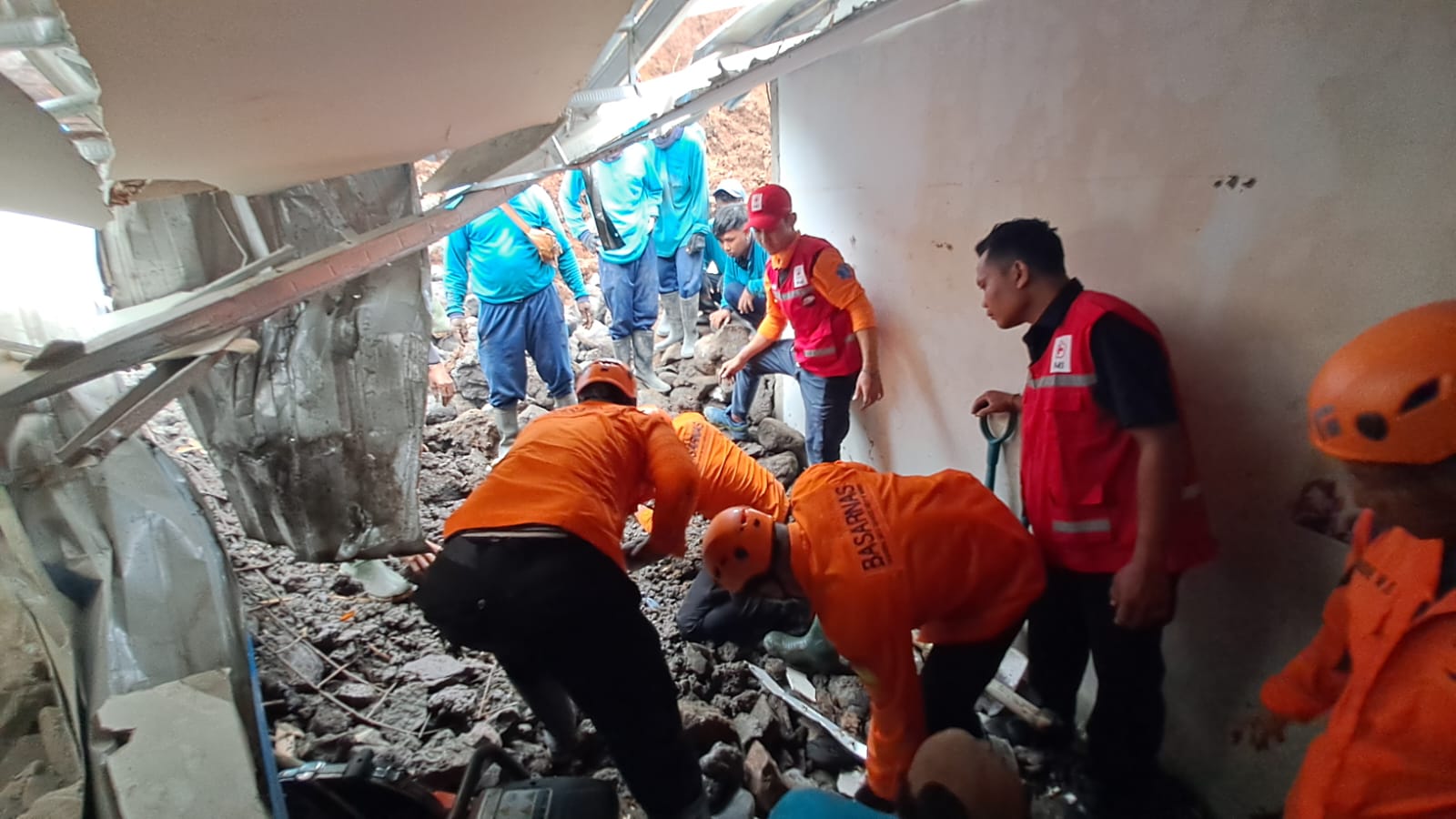 TIM SAR CARI KORBAN LONGSOR DI JALAN KEN DEDES