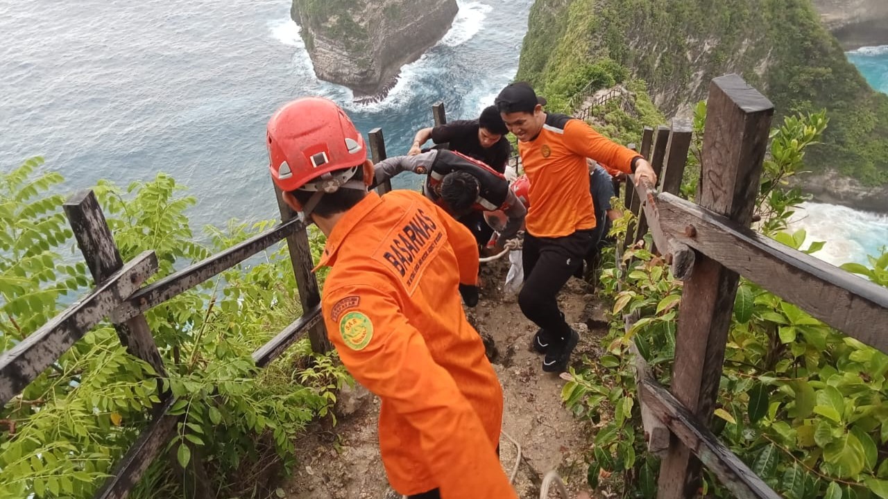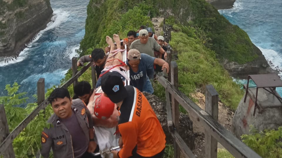 Kantor Pencarian dan Pertolongan Denpasar menerima informasi pada pukul 15.40 Wita. Selanjutnya diberangkatkan 4 personel Unit Siaga SAR Nusa Penida menuju lokasi. "Mereka melaporkan karena kesulitan membawa korban naik tebing melalui anak tangga dengan ketinggian kira-kira 170 meter," imbuhnya.