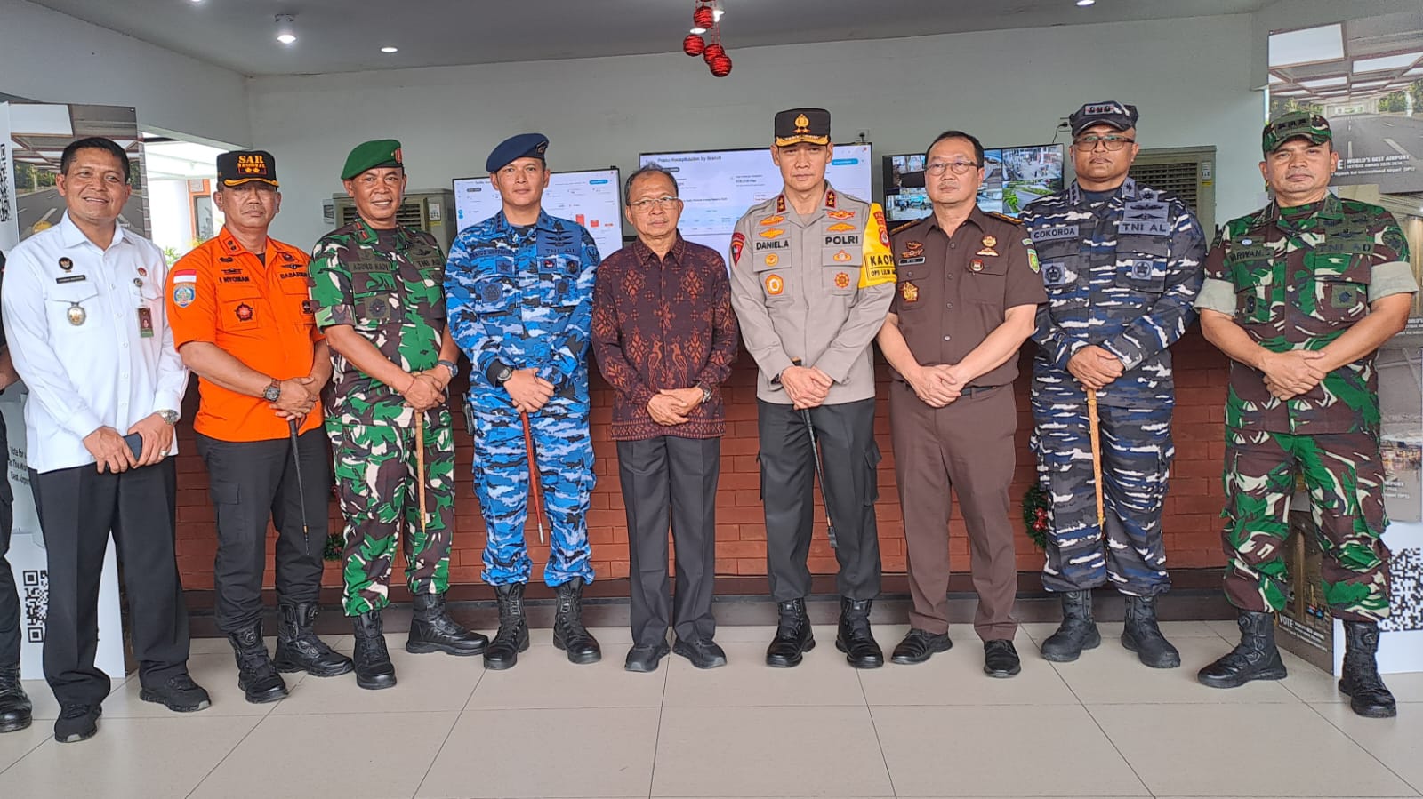 Pada H-1 Natal, Kepala Kantor Pencarian dan Pertolongan Denpasar, I Nyoman Sidakarya turut serta dalam pemantauan bersama Gubernur Bali dan Kapolda Bali serta jajarannya ke Posko Terpadu Natal dan Tahun Baru yang berada di Pelabuhan Benoa dan Bandara Internasional I Gusti Ngurah Rai, Rabu (24/12/2025). Sejauh ini situasi keamanan di Bali masih kondusif, begitupula kondisi cuaca yang meskipun terkadang hujan, namun tidak menimbulkan dampak buruk bagi aktivitas masyarakat.